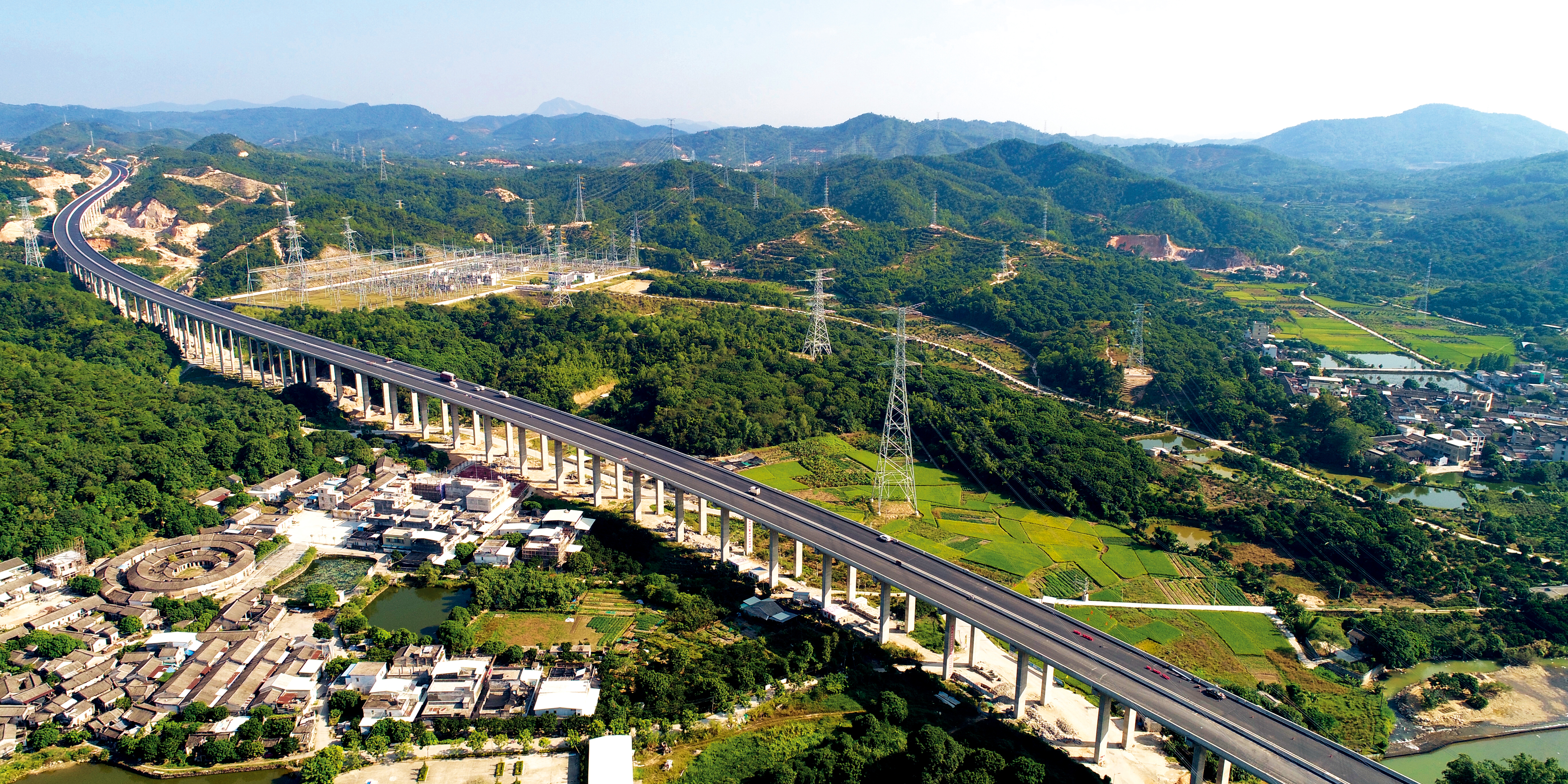 2017年12月建成通車,全長(zhǎng)64.56km,是珠江三角洲向粵東輻射,連接福建、浙江等省的重要通道。榮獲全國(guó)公路交通優(yōu)秀設(shè)計(jì)一等獎(jiǎng)。