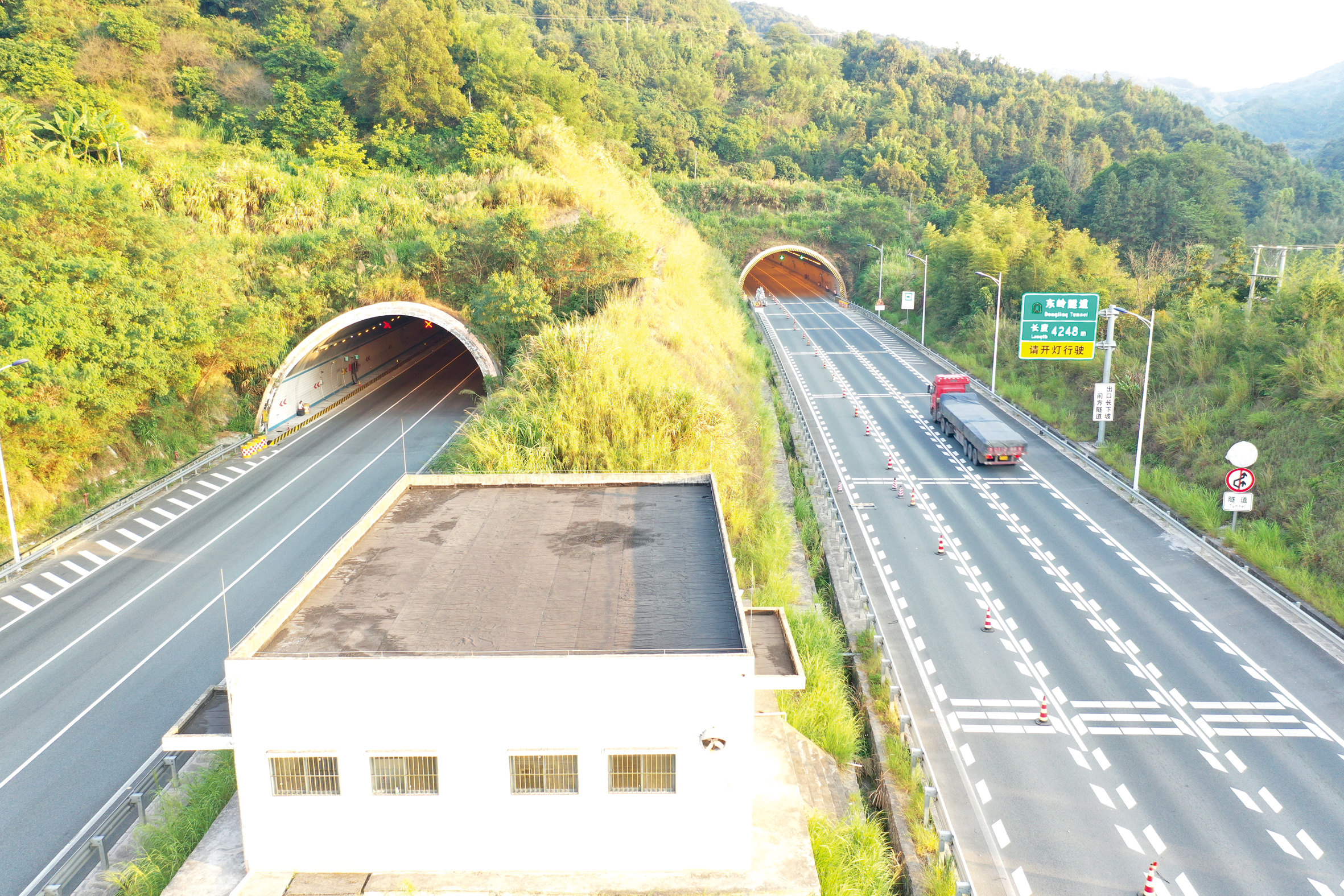 2015年12月建成通車,為汕頭至湛江高速公路揭西大溪至博羅石壩段的控制性工程。左線隧道長4248m,右線隧道長4244m,雙向六車道,設計時速120 km/h。隧道洞口美觀大方,與周邊環境融為一體。 結合項目地質條件復雜、結構斷面大、工期緊等特點,設計中積極利用新技術、新工藝,成功應用復雜地質條件隧道開挖綜合技術,確保工程建設與運營安全。