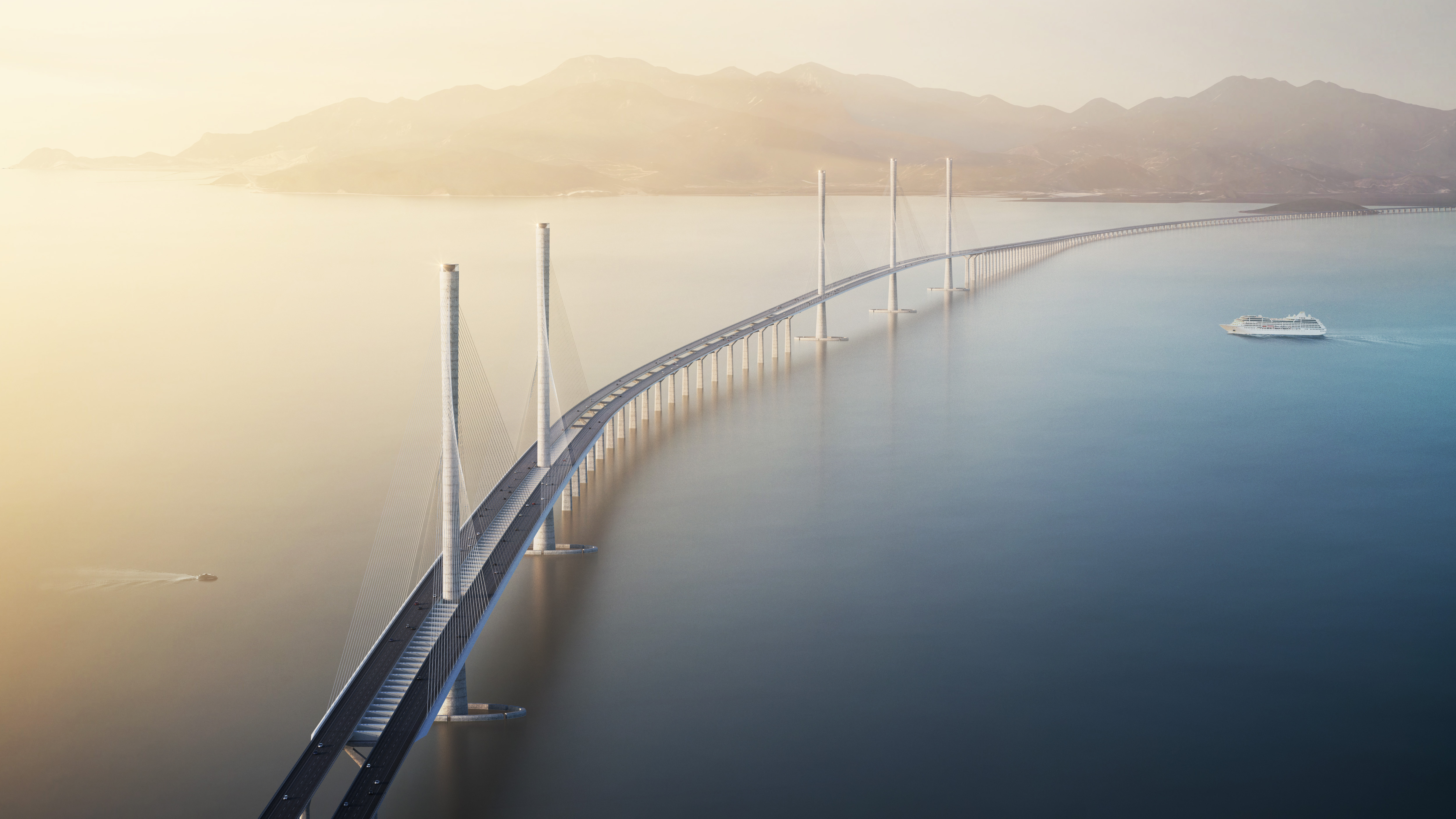 《粵港澳大灣區(qū)發(fā)展規(guī)劃綱要》發(fā)布后首個跨海工程。全長約31公里,全線采用雙向六車道高速公路標(biāo)準(zhǔn)建設(shè),設(shè)計時速100公里/小時,設(shè)計使用壽命100年。我公司主要負(fù)責(zé)本項目A1標(biāo)段的勘察設(shè)計工作,設(shè)計內(nèi)容包括高欄港大橋、中引橋、樞紐互通立交、項目管理中心等。