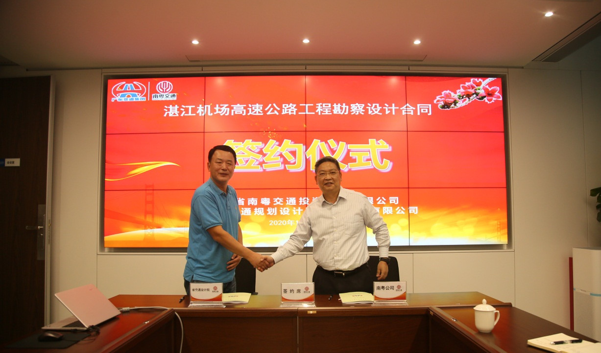 2020年10月23日,我公司與廣東省南粵交通投資建設有限公司在利通廣場42層隆重舉行了湛江機場高速公路工程勘察設計合同簽約儀式。