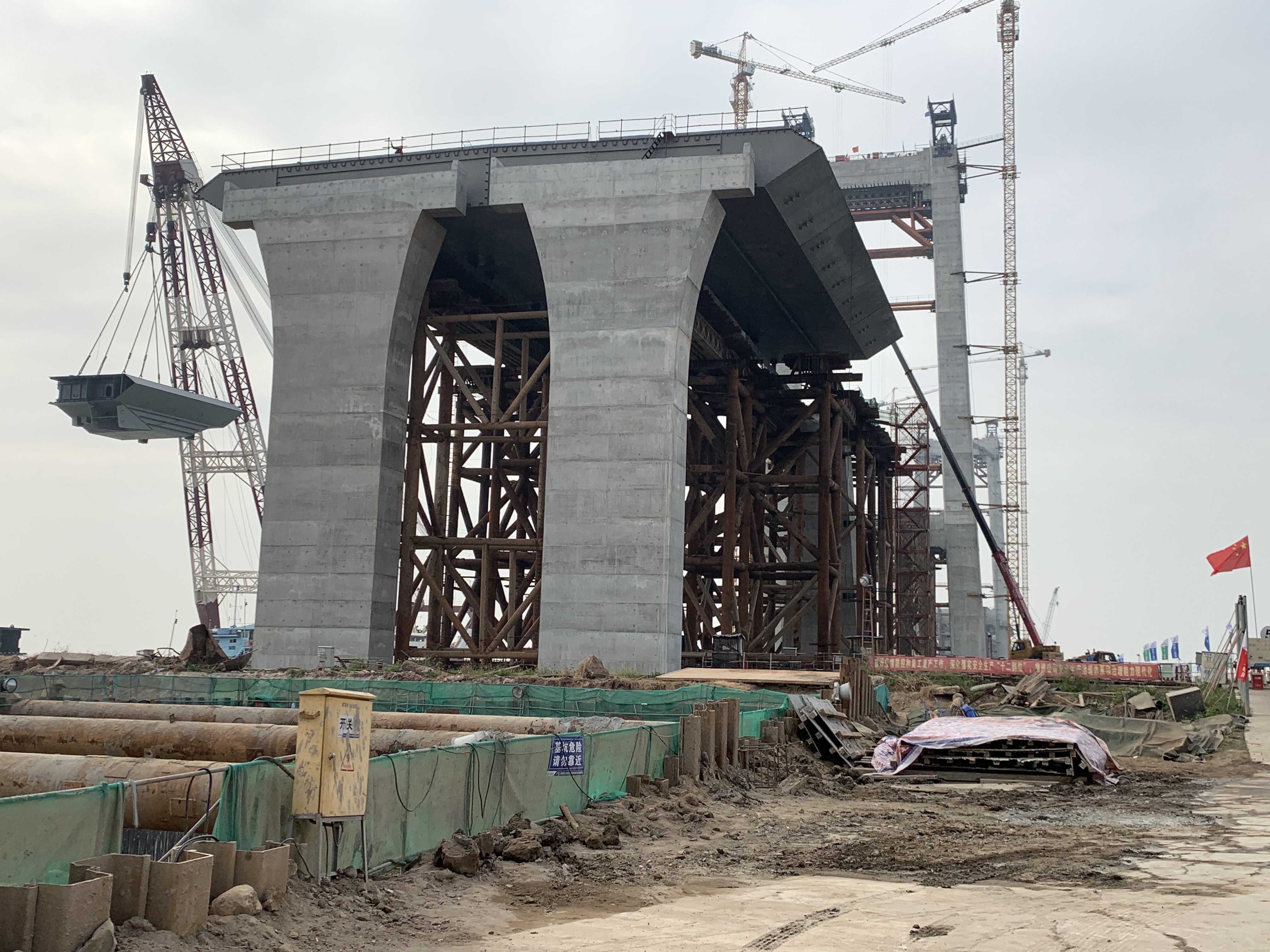 首先,大家前往東江南支流港灣大橋項(xiàng)目地進(jìn)行參觀學(xué)習(xí)。通過(guò)中交二航局項(xiàng)目經(jīng)理游川的詳細(xì)講解,我們了解到本項(xiàng)目主橋?yàn)橹骺?/span>320m的自錨式懸索橋,跨度居國(guó)內(nèi)前列,首次采用“臨時(shí)錨碇法”進(jìn)行主橋上部結(jié)構(gòu)“先纜后梁”施工,解決了自錨式懸索橋“先纜后梁”施工的諸多技術(shù)難題,為我國(guó)橋梁工程施工建設(shè)提供了重要理論依據(jù)和實(shí)用技術(shù)。作為項(xiàng)目監(jiān)理方,我們的監(jiān)理技術(shù)和手段隨著施工工藝的更新而不斷迭代升級(jí),為項(xiàng)目建設(shè)質(zhì)量保駕護(hù)航。“一橋飛架南北,天塹變通途”,作為項(xiàng)目建設(shè)者,我們倍感驕傲!