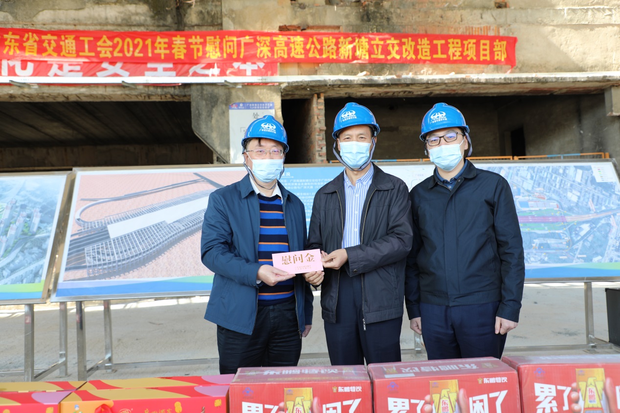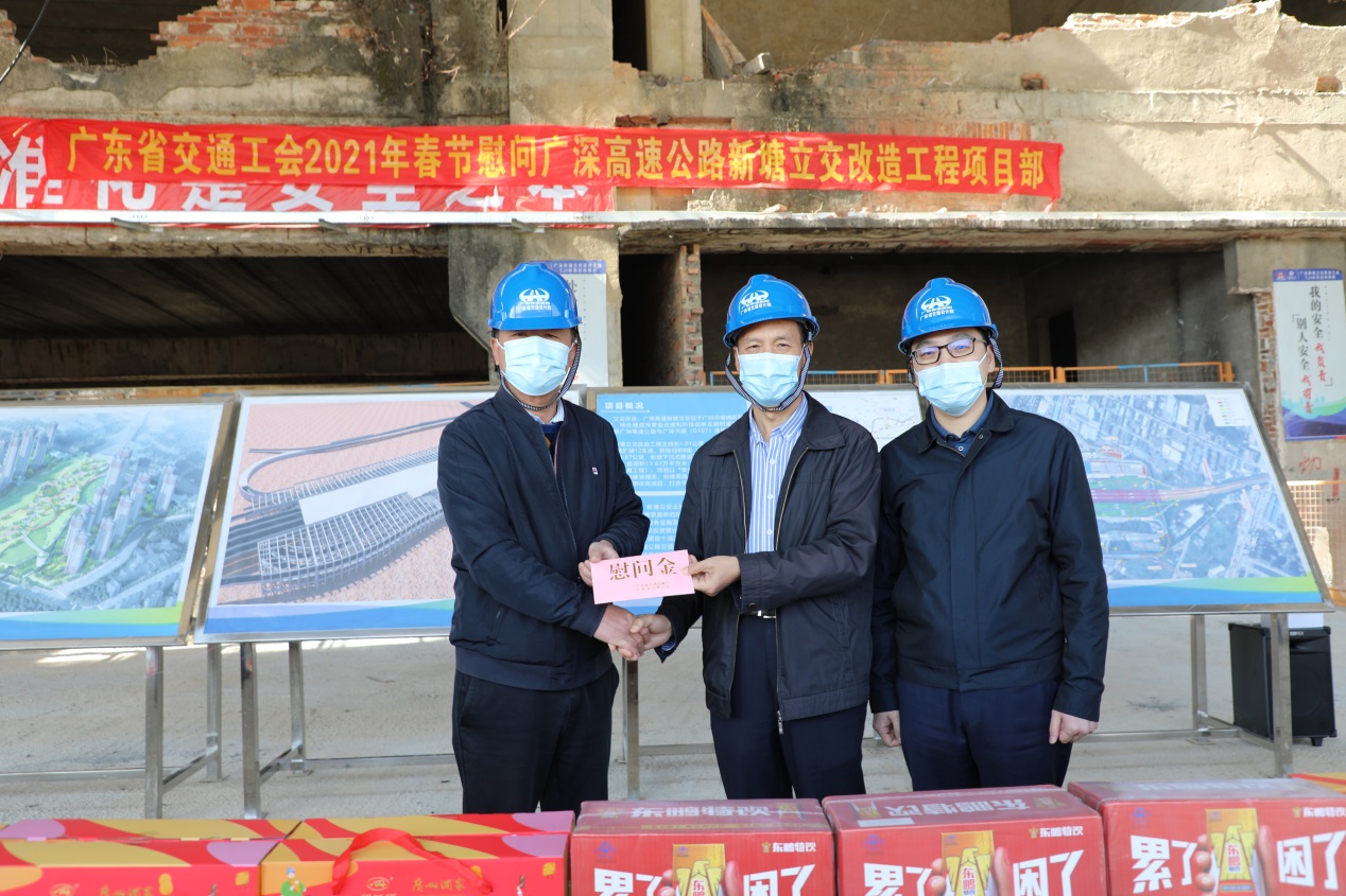 2021年1月29日,省交通運(yùn)輸廳一級(jí)巡視員、副廳長(zhǎng)王富民率省交通廳辦公室主任、省交通工會(huì)主席廖星,省交通工會(huì)主任科員吳藝琳前往我公司承擔(dān)的廣深高速公路新塘立交改造工程項(xiàng)目開(kāi)展調(diào)研慰問(wèn)活動(dòng),為奮戰(zhàn)在省重點(diǎn)工程項(xiàng)目一線員工送來(lái)溫暖關(guān)懷和新春祝福。我公司董事長(zhǎng)李江山,總工程師、南粵工匠梁立農(nóng),副總工程師王景奇、技術(shù)質(zhì)量部主任林敏、第三設(shè)計(jì)分院副院長(zhǎng)李維杰、工會(huì)副主席黃春媚與項(xiàng)目負(fù)責(zé)人、分項(xiàng)負(fù)責(zé)人,以及省公路建設(shè)公司、廣深新塘立交改造工程管理處、保利長(zhǎng)大廣深新塘立交改造工程項(xiàng)目部相關(guān)領(lǐng)導(dǎo)及代表參加了慰問(wèn)活動(dòng)。