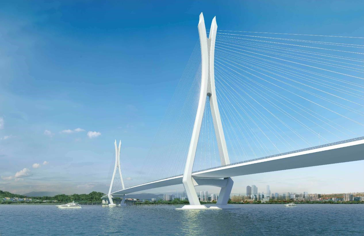 佛山市富龍西江特大橋工程建設總里程為5.81公里,總投資38.9億元,設計速度80公里/小時,采用一級公路標準兼顧城市道路功能,雙向8車道。該項目主橋采用主跨為580m的UHPC鋼混組合梁斜拉橋,目前正處于主塔中塔柱爬模施工當中,計劃2022年底建成通車。