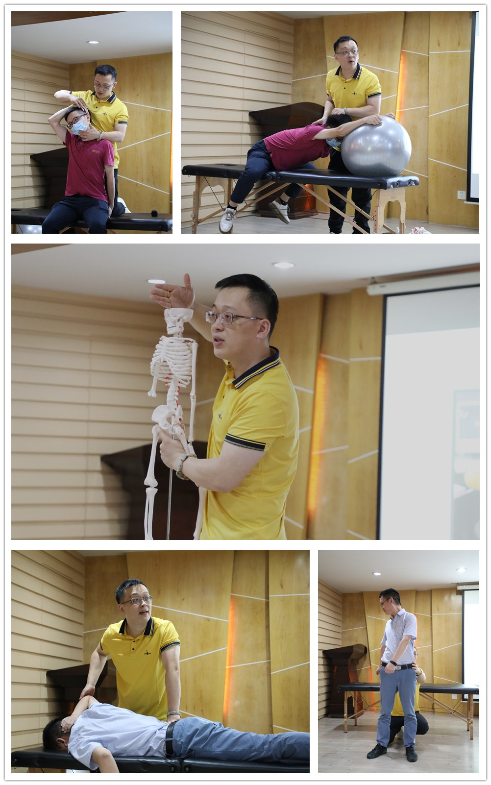 在兩個(gè)小時(shí)的講座中,韓寒老師結(jié)合自己多年的工作經(jīng)驗(yàn),講述了科學(xué)健身的重要意義,有針對(duì)性的介紹了正確的呼吸方式、頸痛腰痛的自我診斷手法以及緩解疼痛的鍛煉方法等。韓寒老師還邀請(qǐng)了現(xiàn)場(chǎng)觀眾上臺(tái)演示,并針對(duì)上臺(tái)觀眾自身頸的痛腰痛問(wèn)題,講授相應(yīng)的診斷手法和鍛煉方法,讓現(xiàn)場(chǎng)觀眾從實(shí)景模擬中切身感受到科學(xué)健身的重要性。