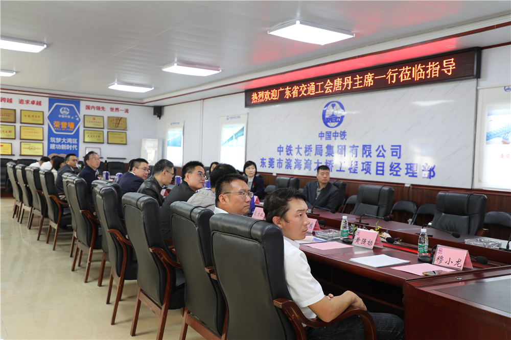 唐主席一行先后來到東莞市濱海灣大橋項目現場和工程項目部,了解濱海灣大橋的項目概況、設計思路和項目特點。東莞市濱海灣大橋位于濱海灣新區規劃內灣和濱海景觀長廊的重要節點位置,是新區標志性景觀橋梁。濱海灣大橋主橋跨徑60+200+200+60m=520m,橋寬60m,雙向八車道,是目前國內跨徑最大、寬度最寬的空間扭索面斜拉橋;結合景觀造型及受力需求,中下塔柱采用鋼殼混凝土組合塔,上塔柱采用鋼塔,形成真正意義上鋼-鋼殼混凝土混合塔,為國際上首次應用。項目還采用了BIM正向設計,實現碰撞分析、節點優化、有限元分析、3D打印實驗分析等豐富的BIM技術應用場景。濱海灣大橋設計方案“絲路明燈,玉蘭花開”靈感來源于東莞市花玉蘭花,建筑景觀效果與地域文化高度融合,極具標識性,曾榮獲“濱海灣大橋方案設計國際競賽”第一名。
