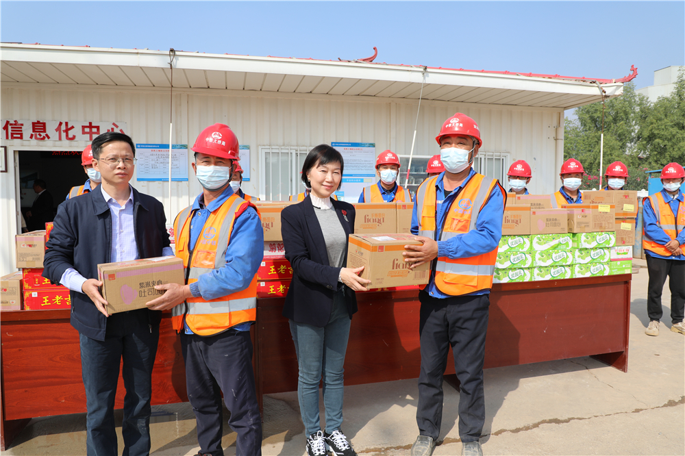 唐丹主席和我公司陳賢文主席向項目參建單位的一線工作者送上了新春慰問品