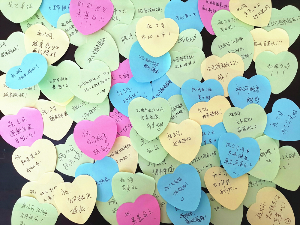 2022年,恰逢公司七十歲生日,公司工會結合“三八”婦女節主題開展了“巾幗獻祝福”活動。活動現場,女職工們將自己對公司七十歲生日的祝福親筆書寫在心形便簽紙上,并由衷地祝愿公司業務蒸蒸日上,發展越來越好。公司工會在活動現場還給女職工們準備了節日專屬小禮物,以此傳遞對她們的美好祝福。