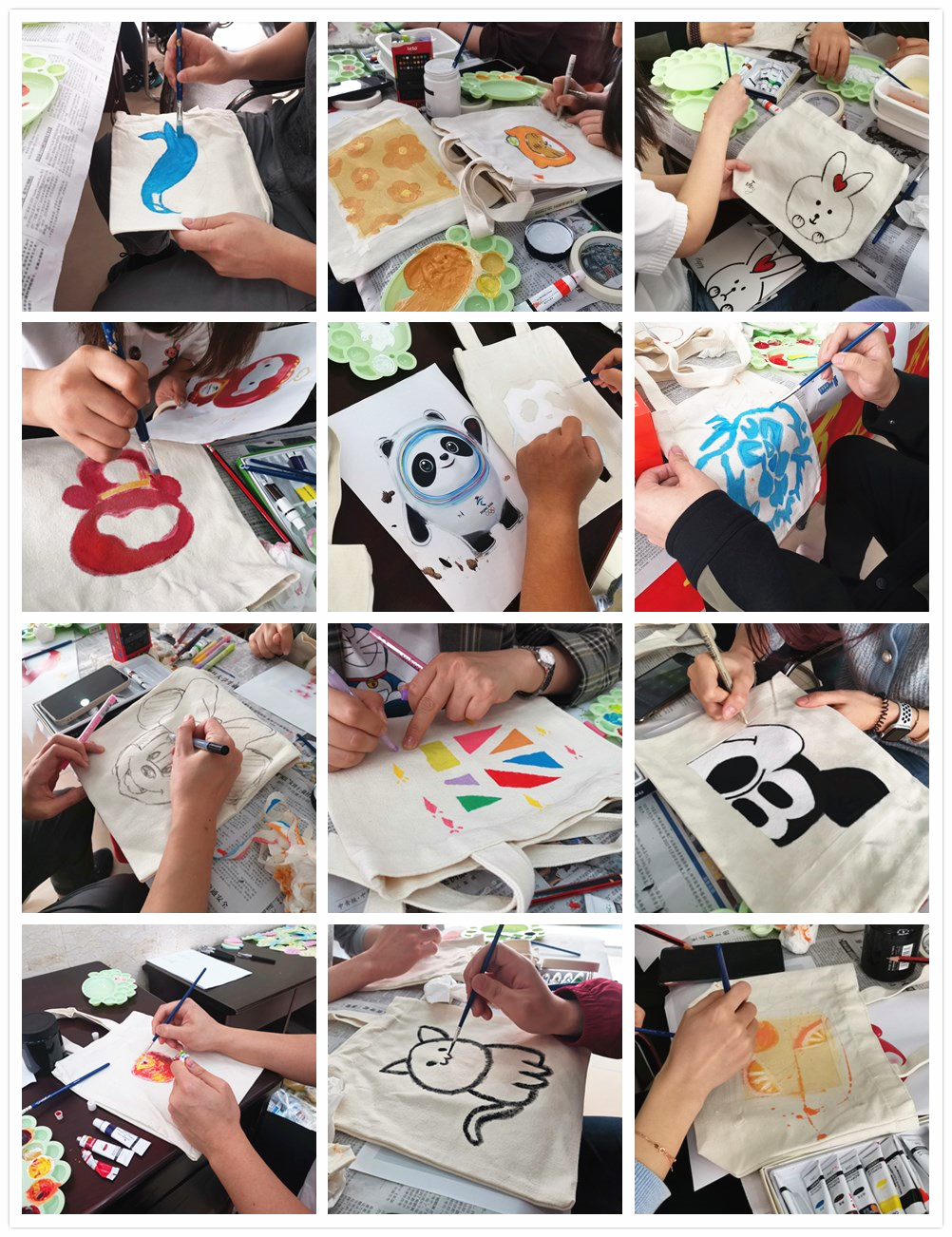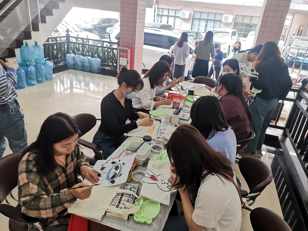為陶冶職工藝術情操,公司工會、員工書畫攝影協會聯合開展了布藝包彩繪DIY活動。大家在工作人員的引導下,紛紛尋找到了自己想要描摹的圖案,用畫筆在布藝包上興致勃勃地繪制創作。隨著一款款精致漂亮的布藝包彩繪順利完成,大家開心地舉起自己的作品拍照,一起分享成果。