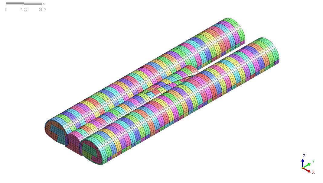 為有效解決上述技術難點,軌道與地下工程設計院創新性地提出了“折線型輔助導洞法”,將分岔隧道施工工作面順暢地從分離段過渡至連拱段,增加了連拱段隧道施工作業面,緩解了連拱端進洞緩慢對隧道連拱段施工工期的影響,極大提高了施工效率。