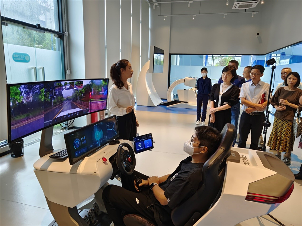 在座談會(huì)上,集團(tuán)規(guī)劃與智慧交通設(shè)計(jì)院機(jī)電與智慧交通所所長(zhǎng)關(guān)小杰向調(diào)研組一行詳細(xì)介紹了車路協(xié)同、數(shù)字孿生隧道等智慧交通成果與業(yè)務(wù)發(fā)展情況。隨后,調(diào)研組一行現(xiàn)場(chǎng)參觀了集團(tuán)戰(zhàn)略合作單位百度Apollo無人駕駛的廣州園區(qū),了解集團(tuán)與百度Apollo聯(lián)合打造的車路協(xié)同、ACE智能交通引擎等新技術(shù)的落地情況。