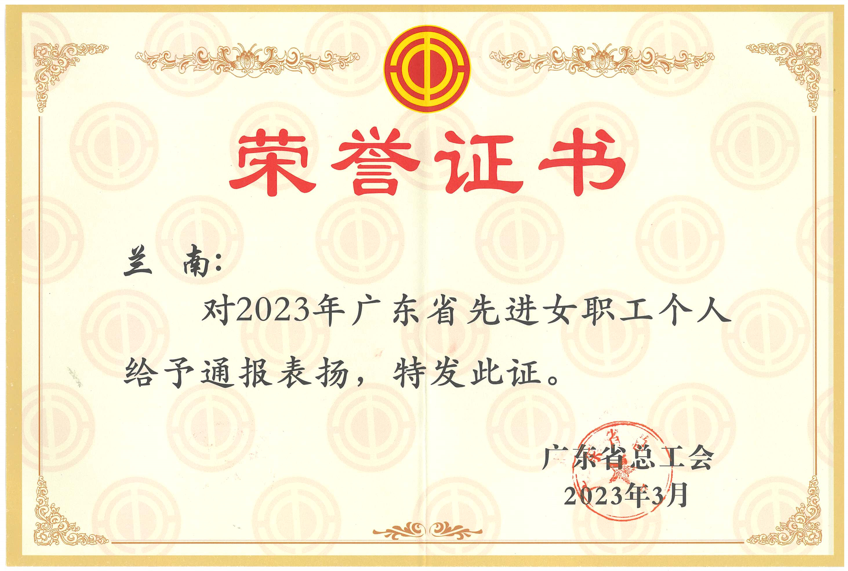 近日,從廣東省總工會(huì)傳來(lái)喜訊,集團(tuán)九域公司總工程師蘭南同志被授予“2023年廣東省先進(jìn)女職工個(gè)人榮譽(yù)稱號(hào),特此報(bào)喜。