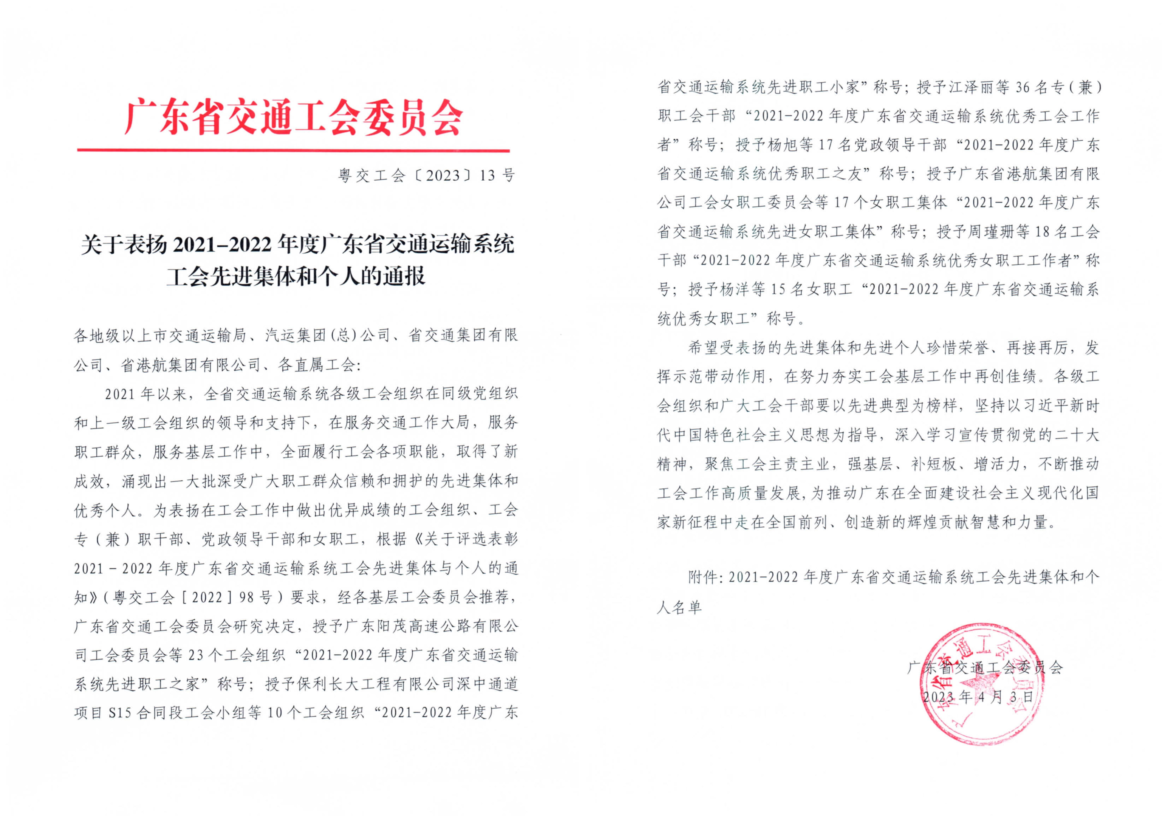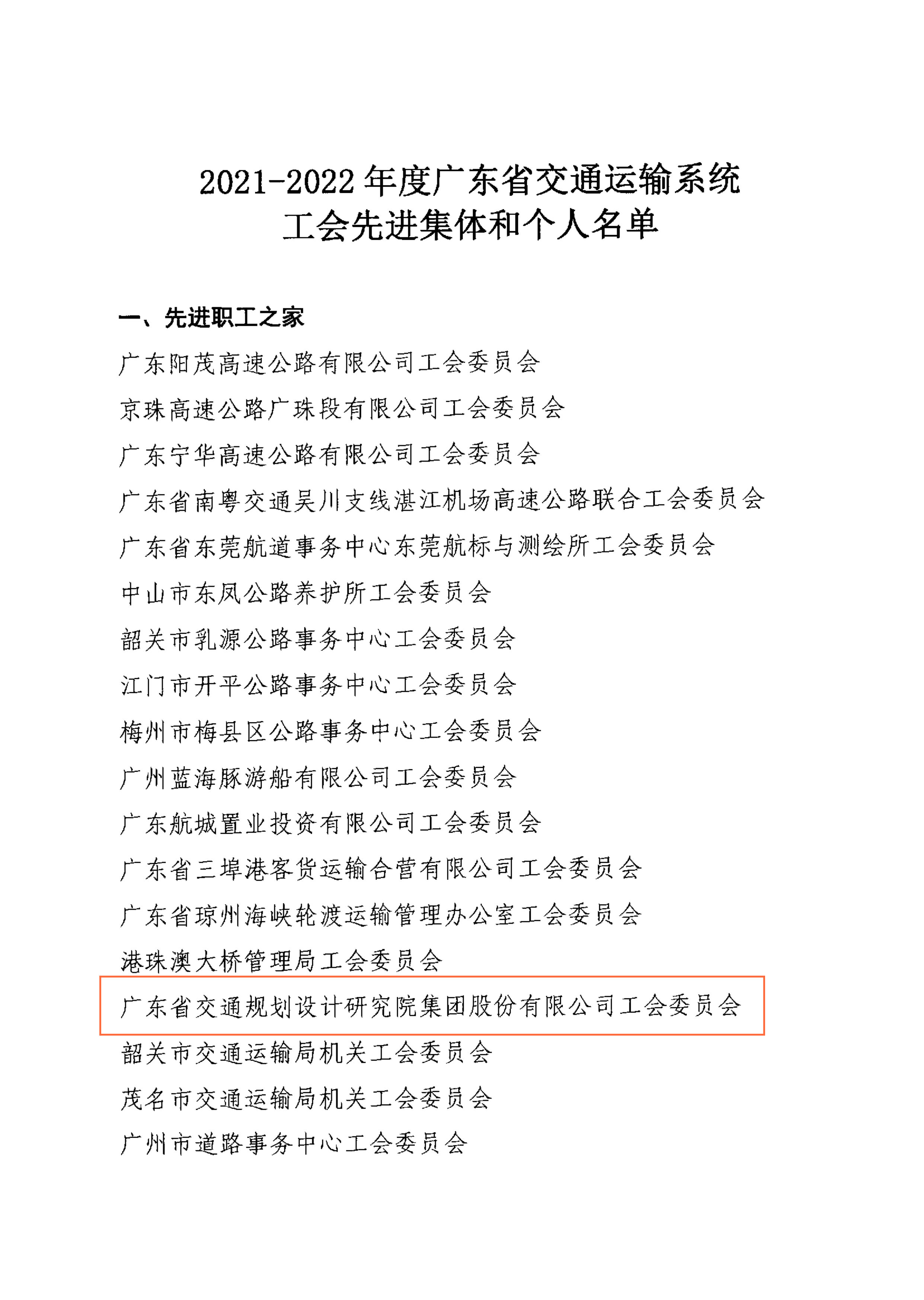 集團榮獲2021-2022年度廣東省交通運輸系統工會先進集體和個人多項榮譽