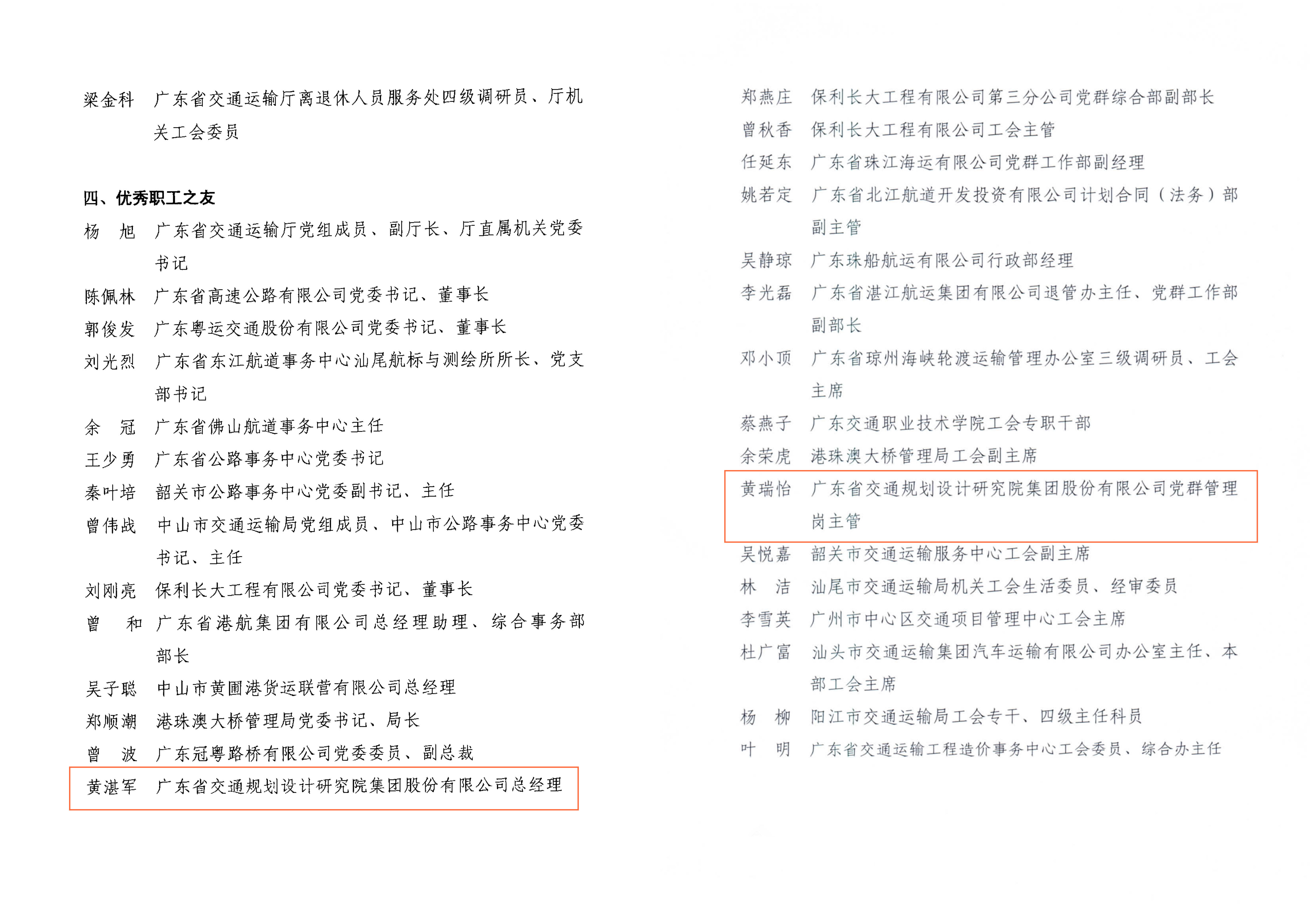 近日,集團工會被廣東省交通工會委員會授予2021-2022年度廣東省交通運輸系統“先進職工之家”榮譽稱號;集團總經理黃湛軍獲評為“優秀職工之友”,綜合管理辦公室黃瑞怡獲評為“優秀工會工作者”。特此報喜!