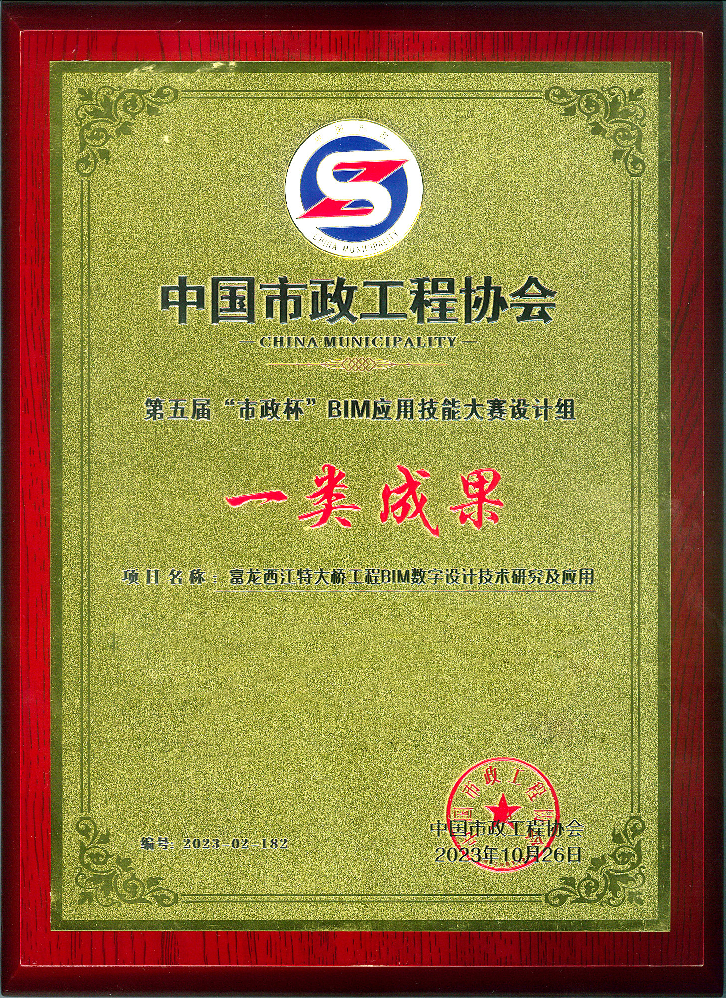 11月10日,2023年度中國市政工程協會第五屆“市政杯”BIM應用技能大賽頒獎典禮在佛山市隆重召開。經過一審、二審和終審答辯,公司《富龍西江特大橋工程BIM數字設計技術研究》從全國575個參評BIM項目的激烈競爭中脫穎而出,榮獲設計組一類成果(一等獎)。自去年《濱海灣大橋正向設計與數字化建造》項目獲獎后,公司再次榮獲該獎項一類成果(一等獎)。