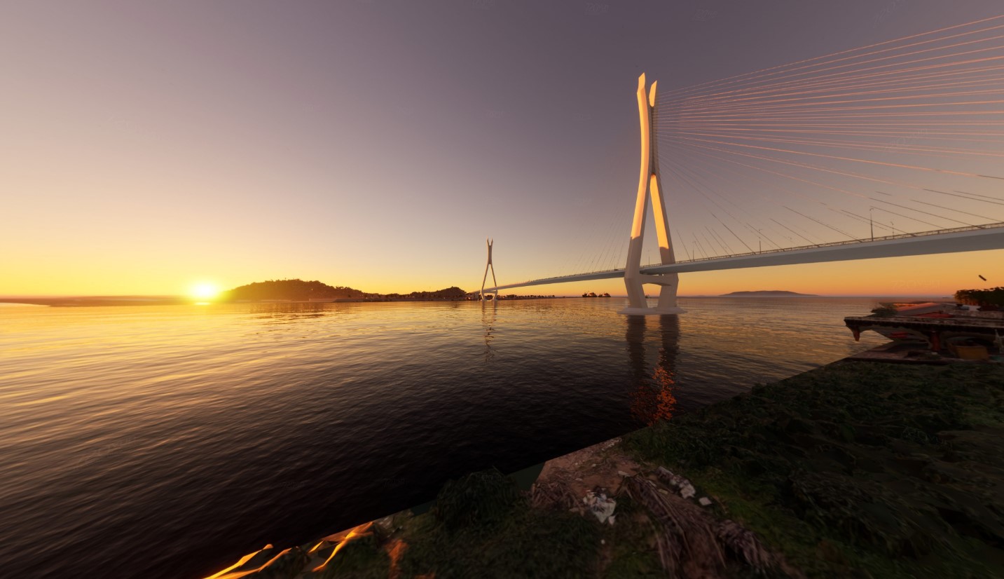 富龍西江特大橋工程共設樞紐互通立交2處(富灣立交、龍池立交)、特大橋1座(富龍西江特大橋);主橋為580米主跨雙塔雙索面混合梁斜拉橋(UHPC組合梁+混凝土梁),首創UHPC組合橋面板和全節段工廠蒸養快速組合技術,以及先滑后固型組合鋼錨箱索塔錨固技術。