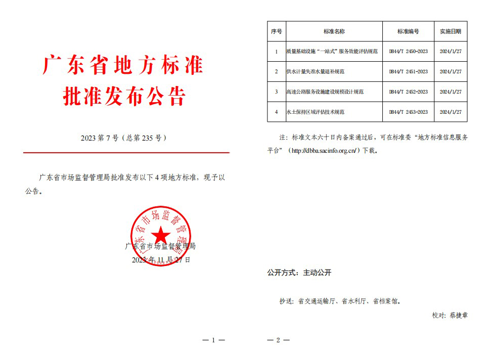 11月27日,由公司主編的廣東省地方標準《高速公路服務設施建設規模設計規范》(DB44/T 2452-2023)經廣東省市場監督管理局批準正式發布,實施日期為2024年1月27日。
