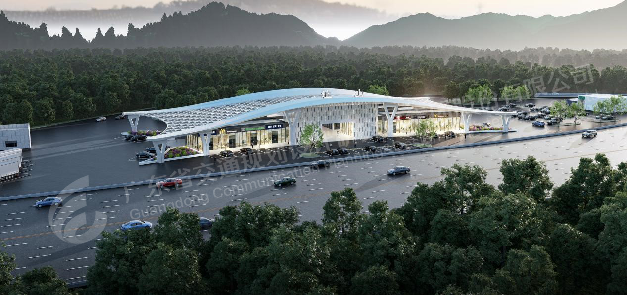 址山服務區是佛開高速南段改擴建工程項目的一部分,認真貫徹落實省交通集團“十四五”發展規劃和服務區“一路一策、一區一品”建設理念工作部署和要求,整體布局設計借鑒機場航站樓模式,將充電設施與服務樓作一體化設計,凸顯新能源服務區的新型設計特色。