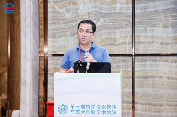 公司市政設計院橋梁副總工程師梁建東作題為《一元路橋梁設計與數(shù)字化應用實踐》的主題報告