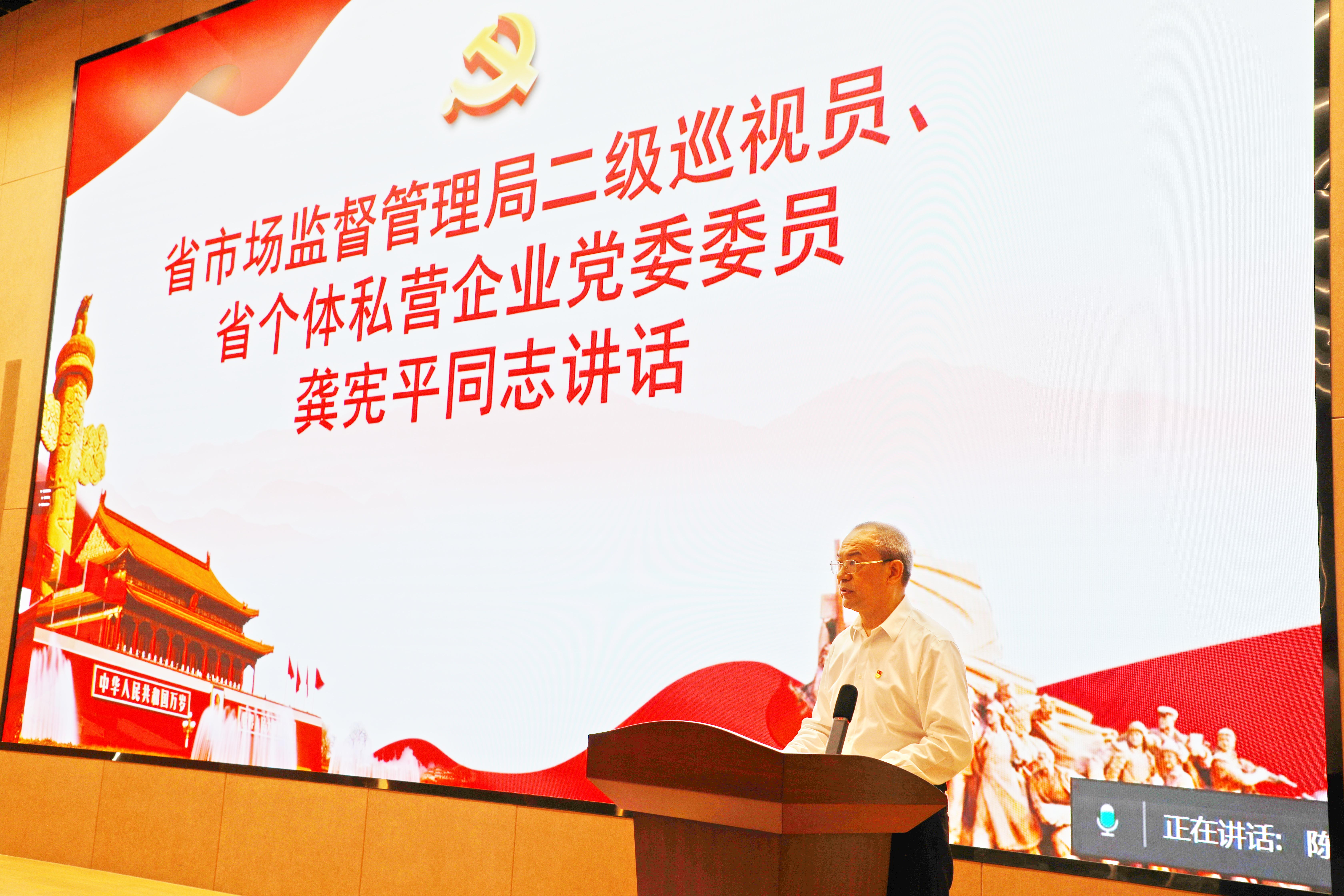 省市場監督管理局二級巡視員、省個體私營企業黨委委員龔憲平作了講話,肯定了公司黨委所取得的各項黨建工作成果,并勉勵公司黨委繼續發揮先鋒模范帶頭作用,主動作為、奮發進取,用紅色“引擎”激活新動能,以高質量黨建推動企業高質量發展。