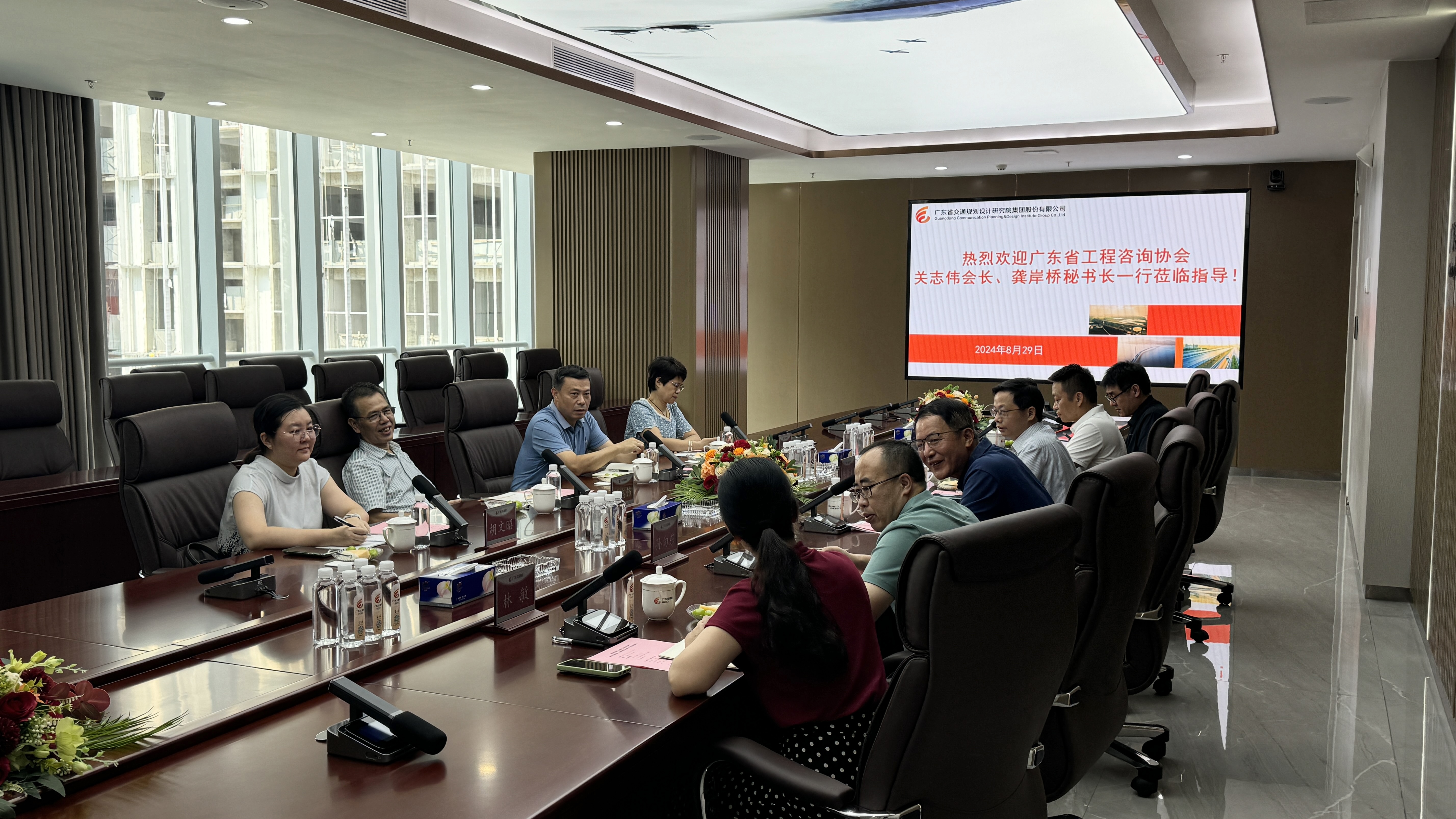 8月29日,廣東省工程咨詢協(xié)會(huì)會(huì)長關(guān)志偉、秘書長龔岸橋一行蒞臨公司座談交流。公司董事長李江山,副總經(jīng)理陳賢文,總工程師孫向東,總經(jīng)理助理、九域公司總經(jīng)理朱青,市場(chǎng)發(fā)展部主任鄔曉輝,科技質(zhì)量部主任林敏參加了交流會(huì)。