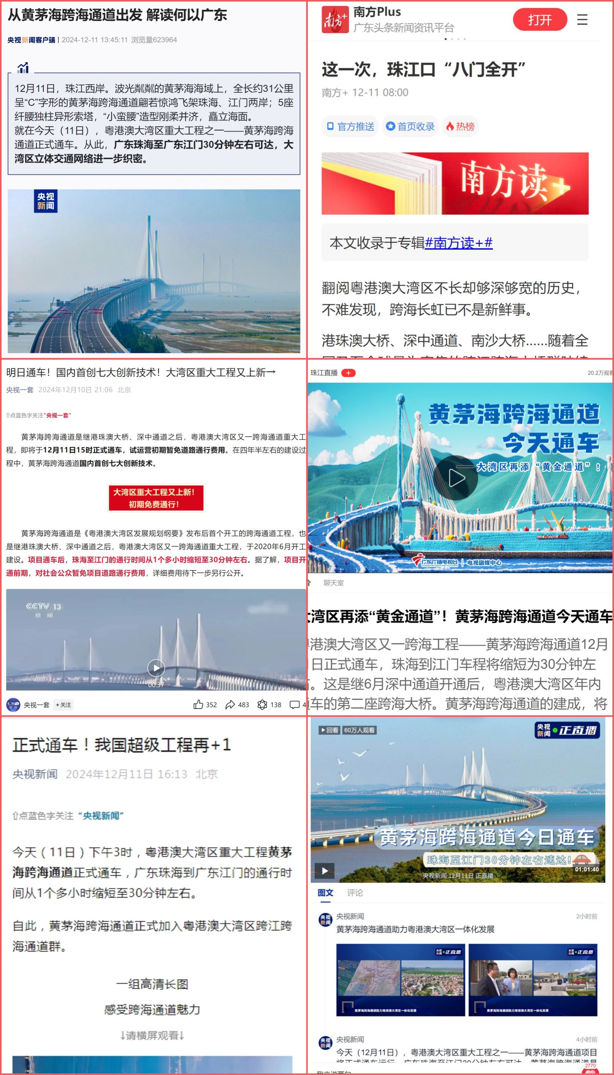 黃茅海跨海通道項目順利通車獲得了各方的高度關注,新華社、人民日報、光明日報、北京日報等主流媒體均對此進行了報道并給予高度評價。接下來,公司將再接再厲,以更加精益求精的設計理念,為社會貢獻更多精品工程!