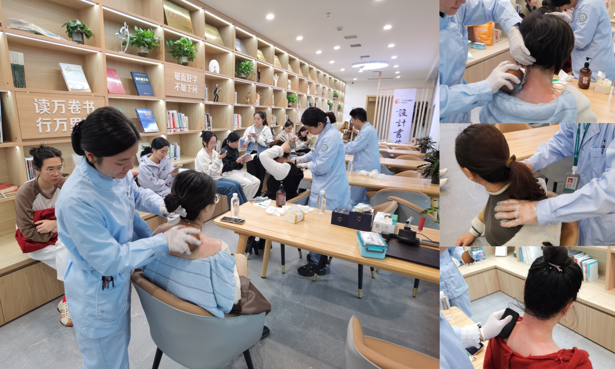 為舒緩女職工身心,公司工會邀請街道社區衛生服務中心的專業醫護人員到公司現場,為女職工提供中醫健康理療服務,肩頸按摩、中醫刮痧、火龍罐療法等,借助中醫的智慧和醫師的巧手,幫助女職工緩解壓力,卸下積攢的疲勞,保持身心健康。