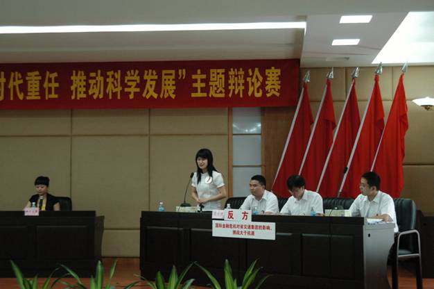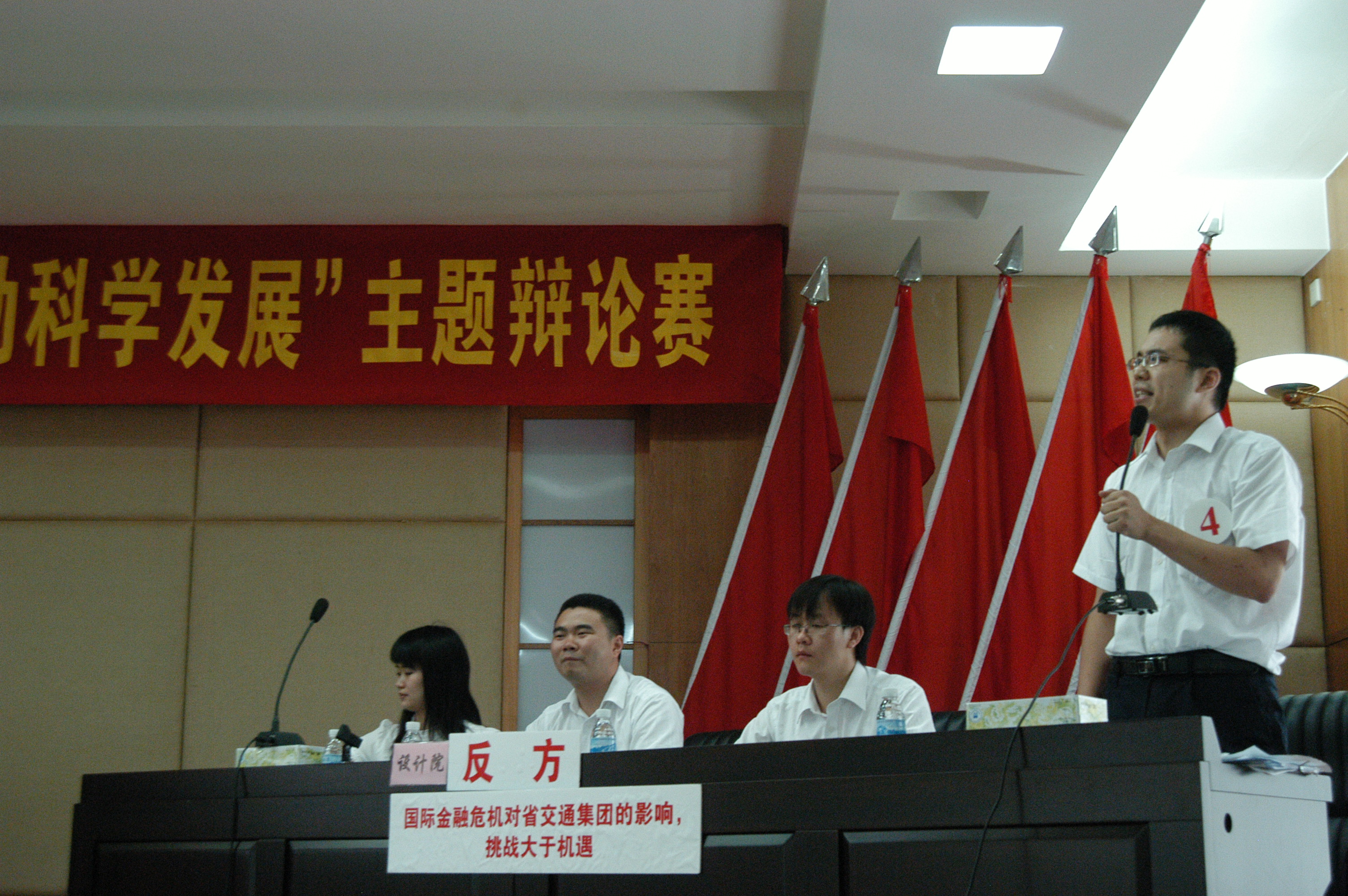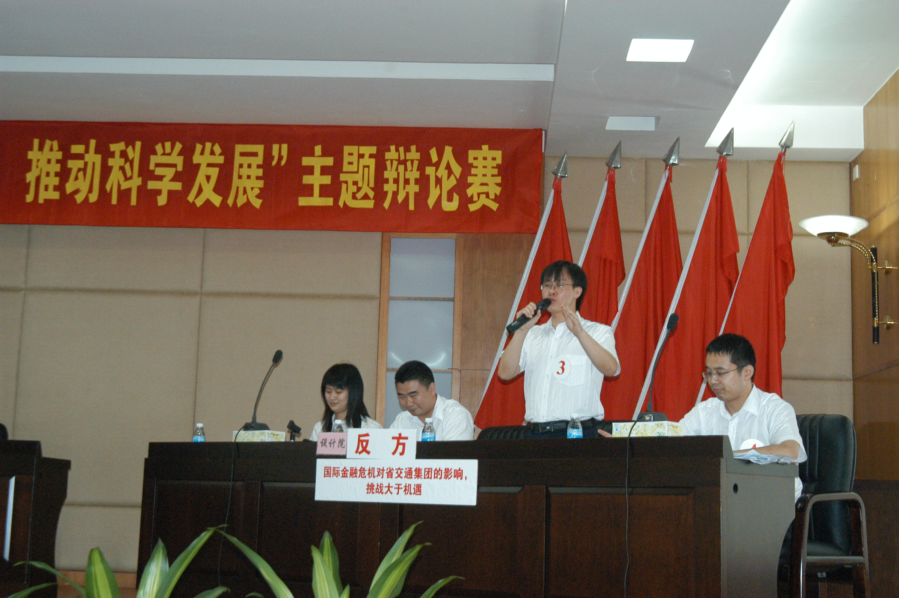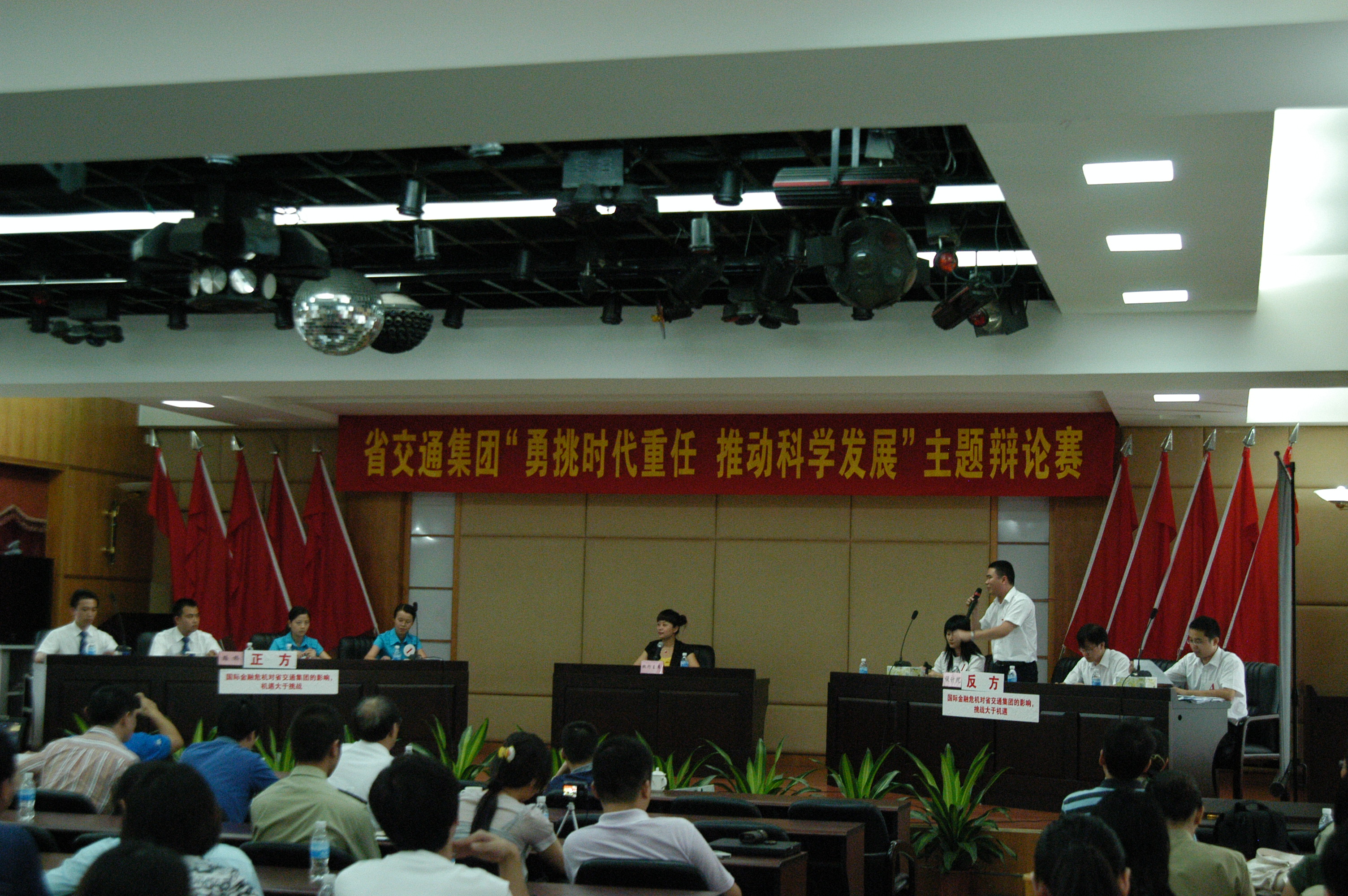 7月8日上午,由省交通集團(tuán)組織的“勇挑時(shí)代重任,推動(dòng)科學(xué)發(fā)展”主題辯論賽決賽在花都落下帷幕,我公司辯論隊(duì)(決賽辯論隊(duì)員周鑫、王一休、唐文、王玉文)舌戰(zhàn)群儒,乘勝追擊,最終摘得桂冠,榮膺一等獎(jiǎng)!