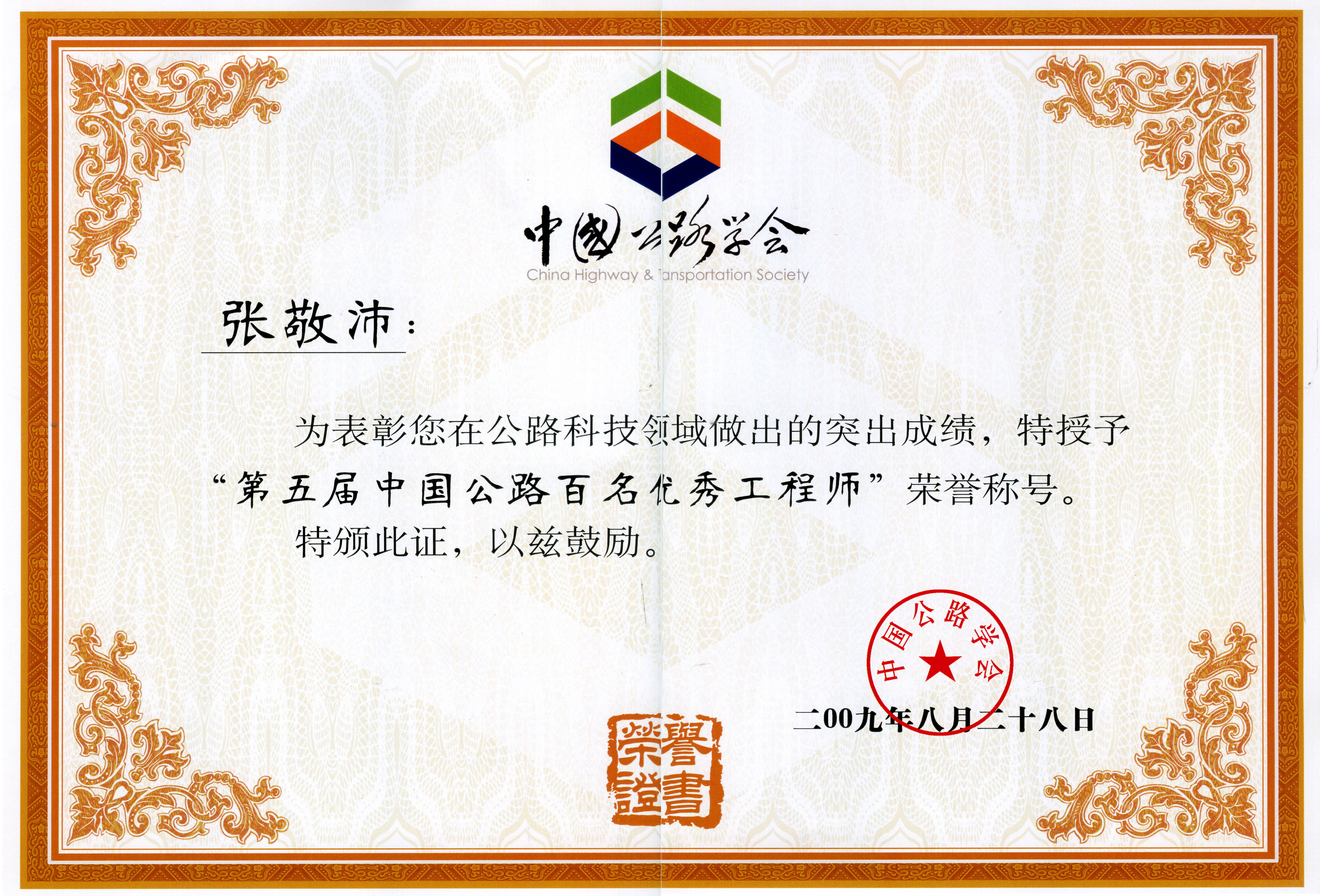 經中國公路學會評審,我公司張敬沛副總工程師被授予“第五屆中國公路百名優秀工程師”榮譽稱號,特此報喜。