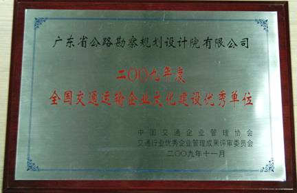 公司榮獲2009年度“全國(guó)交通運(yùn)輸企業(yè)文化建設(shè)優(yōu)秀單位”稱號(hào)