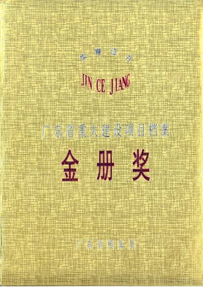 “廣東省重大建設項目檔案金冊獎”由省檔案局和省發改委2007年根據國家檔案局和發改委的有關精神聯合設立,2009年僅有兩個項目獲此殊榮。