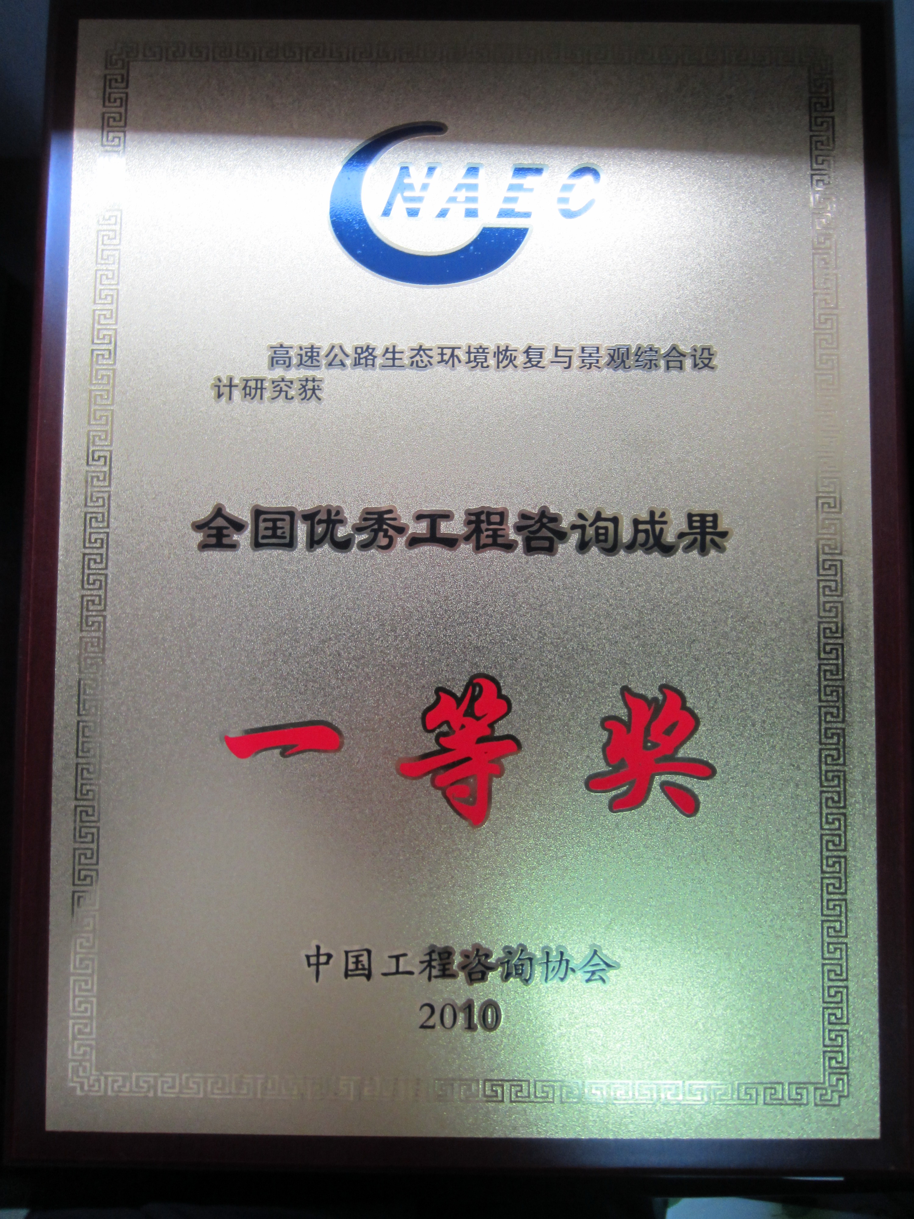“高速公路生態環境恢復與景觀綜合設計研究”項目榮獲“2010年度全國優秀工程咨詢成果一等獎