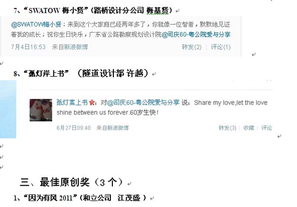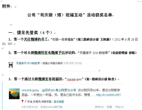 公司“司慶微(博)祝福互動”活動獲獎名單揭曉