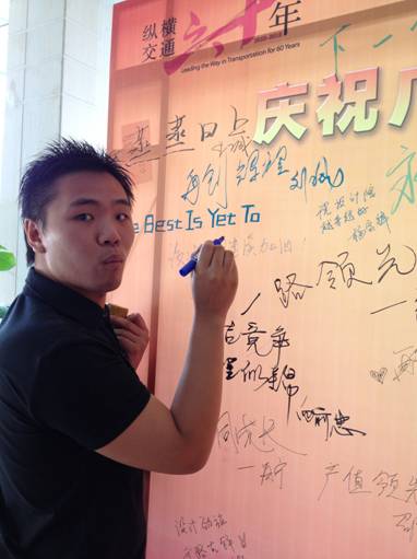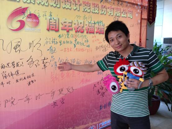 9月21日上午,公司在一號樓大堂舉行了一場別開生面的頒獎儀式。李琴總經理助理為“司慶微(博)祝福互動”活動的獲獎網友頒發紀念品。儀式上,網友們在公司“祝福墻”上書寫祝福,并合影留念。