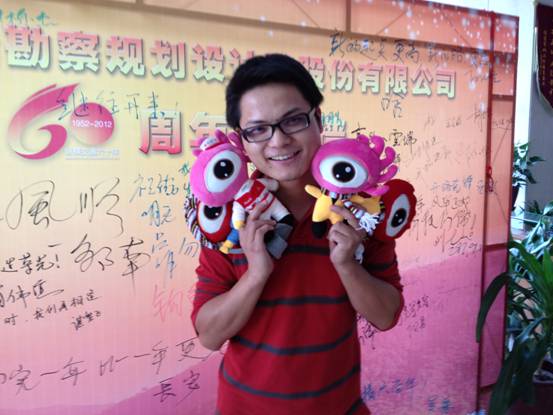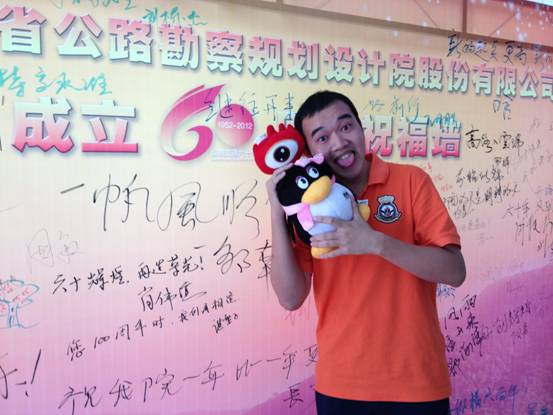 本次活動的紀念品是新浪和騰訊微博的限量公仔,網友們見了很心動,抱著可愛的公仔紛紛在祝福墻前秀上笑臉照。