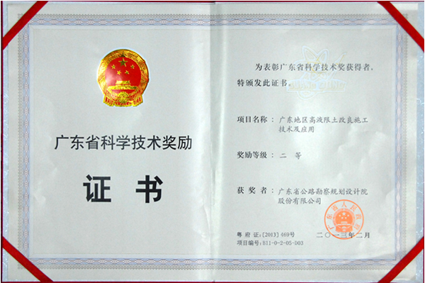 公司參與完成的“廣東地區高液限土改良施工技術及應用”項目獲廣東省科學技術二等獎