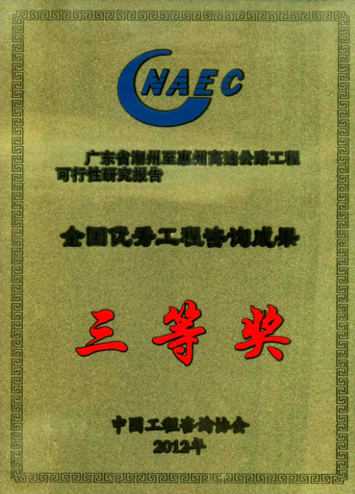 1、廣東省潮州至惠州高速公路工程可行性研究報告榮獲三等獎