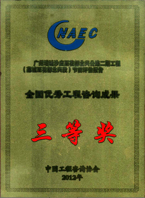 2、廣州增城沙莊至花都北興公路二期工程(荔城至花都北興段)節能評估報告榮獲三等獎