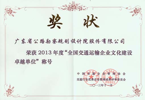 熱烈祝賀公司榮獲2013年度全國交通運輸企業文化建設卓越單位
