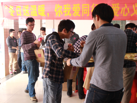 2014年11月17日中午,行政事務部攜手第一黨支部在2號樓一樓大堂組織開展“冬日送溫暖,你我愛同行”主題義賣助學活動,取得圓滿成功。活動得到了公司領導和廣大熱心員工的積極響應,100個“膳魔師”牌保溫杯全部售罄,共籌集善款13516元(含第一黨支部捐助的5500元成本費用)。全部善款將兌換實物捐助給粵北山區韶關樂昌市坪石鎮新巖下村的貧困兒童。