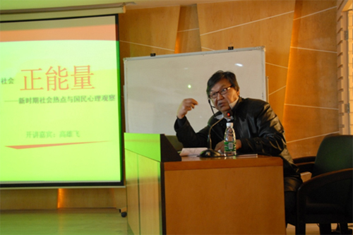 演講過程中,高教授首先從改革開放的成就和民眾的幸福感出發(fā),向我們講訴了“仇官”、“仇富”、“富二代”和“官二代”等非正常社會大眾心理情緒所引發(fā)的社會公平公正問題;緊接著,又從問題入手,提出了維護和促進社會公平正義的方法論。高教授以“端正社會心理情緒”為核心的闡述充滿正能量,有如冬日里的一碗心靈雞湯。