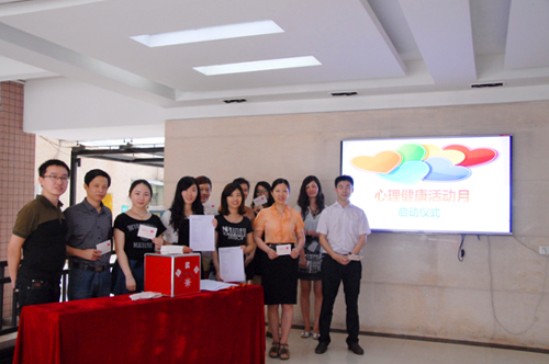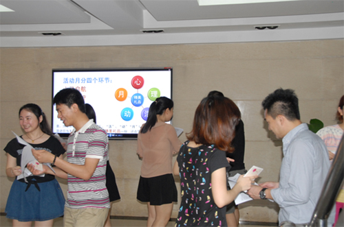5月6日上午,公司在2號樓一樓大堂舉行了2015年“關注心靈,點燃激情”心理健康活動月啟動儀式。公司副總經理、工會主席李琴,行政事務部工作人員和工會小組長參加了儀式。活動現場,小組長們為過往員工發放了心理自測問卷和母親節祝福卡。拿到問卷的小王下午向我們反饋:“我自測了其中3套問卷,覺得挺有意思的。在活動的參與過程中,我覺得自己在成長。這是一次很有意義的活動。”