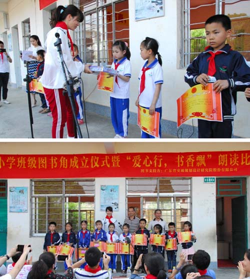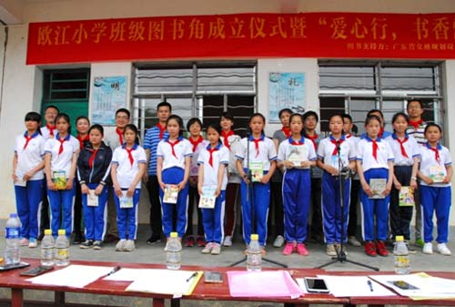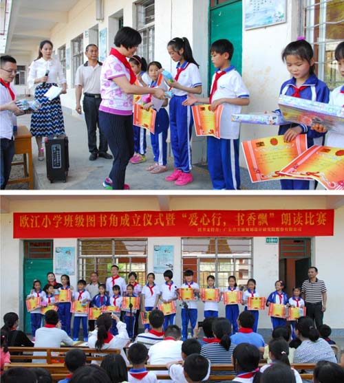 搭建一個(gè)“圖書(shū)角”,分享一座“精神糧倉(cāng)”——第二黨支部黨員同志們繼續(xù)滿懷著愛(ài)心和熱情,踐行他們服務(wù)山區(qū)留守兒童的創(chuàng)想。2017年5月5日,第二黨支部黨員同志們歷經(jīng)五小時(shí)車(chē)程,跨越三百里路程,到達(dá)河源龍川黃布鎮(zhèn)歐江小學(xué),走進(jìn)山區(qū)校園,開(kāi)展捐贈(zèng)“愛(ài)心圖書(shū)角”活動(dòng)。這次活動(dòng)中,第二黨支部為歐江小學(xué)9個(gè)班級(jí)各創(chuàng)建了圖書(shū)角,捐贈(zèng)價(jià)值接近兩萬(wàn)元。小小的圖書(shū)角,裝載的不僅是書(shū)籍和知識(shí),更是支部黨員同志們扶貧助困、捐資助學(xué)的愛(ài)心,以及他們對(duì)山區(qū)兒童健康成長(zhǎng)的熱切期盼。