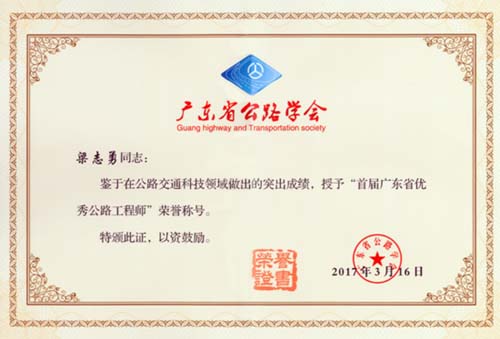 熱烈祝賀陳潮銳、梁志勇副總工程師榮獲首屆“廣東省優(yōu)秀公路工程師”榮譽(yù)稱號(hào)