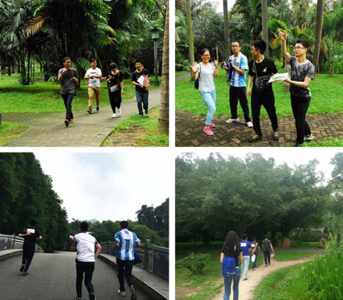 活動計時開始,各隊根據(jù)分發(fā)的地圖與任務(wù)卡在園區(qū)尋找預(yù)先設(shè)置好的打卡點,完成每個點設(shè)置的任務(wù)。活動以完成所有打卡點所用時間的長短計算成績,時間越短排名越高。打卡點的設(shè)置范圍相當(dāng)廣泛,各隊隊員需要選擇合理的路線,制定高效的策略,以奔跑的方式盡可能快速尋找到打卡點,并以團隊合作的方式完成打卡任務(wù)。活動富于趣味性、競爭性與活力性,考驗隊員們團隊合作的能力、戶外辨向的能力、選擇策略的能力以及奔跑的體能。各隊隊員在活動過程中展現(xiàn)了省院員工的活力風(fēng)采。