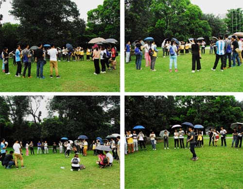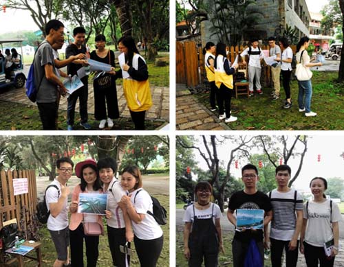 本次戶外拓展活動共吸引了公司各工會小組三十余人報名參加,活動分7隊進行。按任務(wù)抽簽分為三類:狩獵組(共1組,除完成共同任務(wù)外,需要追捕并撕下任意五組各一張名牌),擺拍組(共3組,除完成共同任務(wù)外,需要按圖片提示找到園區(qū)的五個指定地點并按指定動作擺拍),尋寶組(共3組,除完成共同任務(wù)外,需要尋找隱藏在園區(qū)不同地點的五個帶有公司圖標(biāo)的旗子)。