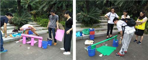(隊員們完成“水到渠成”任務(wù):利用卡紙搭建橋梁,讓乒乓球由指定一方到達另一方(橋梁要求最低離地50cm))