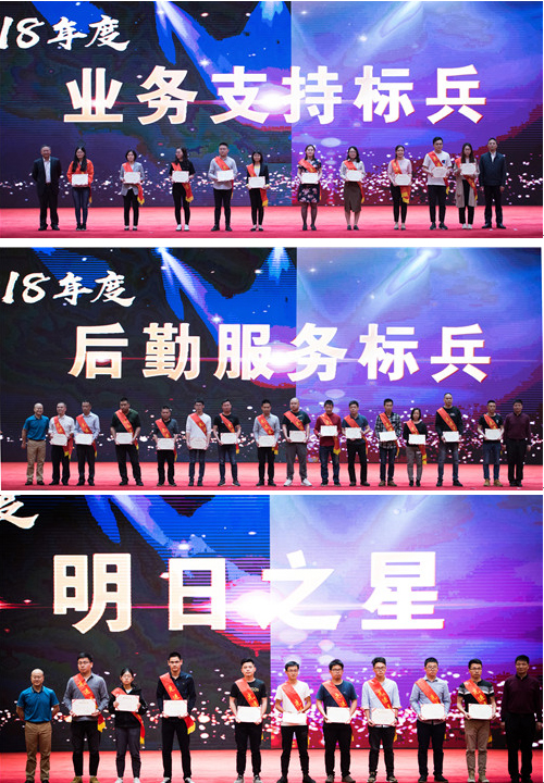 第二部分是對2018年度在生產經營、職能管理等各項工作中表現優秀的各類先進集體和個人進行了集中表彰。