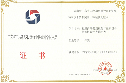 《利用折形鋼腹板先行架設組合箱梁橋設計方法研究》榮獲二等獎,獲獎人員:盧紹鴻、梁立農(nóng)、劉玉擎、孫穎、何海、吳玉剛、曾田勝、黃毅東、梁志勇、劉桂紅。