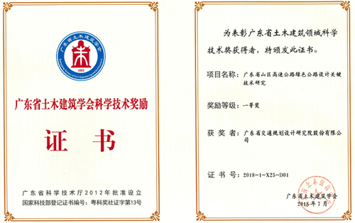 《廣東省山區(qū)高速公路綠色公路設計關(guān)鍵技術(shù)研究》榮獲一等獎,獲獎人員:彭向榮、黃湛軍、梁立農(nóng)、陳新富、陳競飛、梁志勇、李國安、溫玉輝、萬志勇、羅旭東、王強、孫向東;