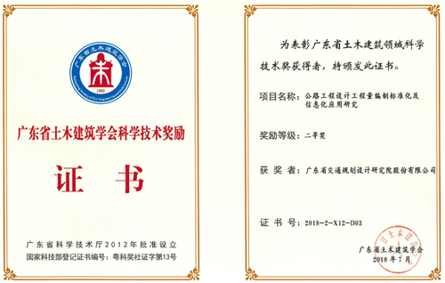 《公路工程設計工程量編制標準化及信息化應用研究》榮獲二等獎,獲獎人員:管培、苗德山、杜燕群、吳偉彬、王燕平、郭衛(wèi)民、陳潮銳、蘇衛(wèi)國;